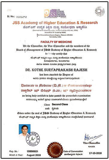 Senior Resident - Gastroenterology & Hepatology (2015-2018) JSS Hospital, Mysore, Karnataka